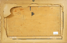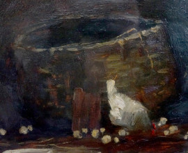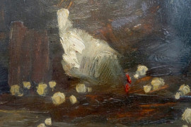 Galline e pulcini, olio su tavola, firmato e datato in basso a destra F. Rontini [19]36, cm 36,7x65,3, entro cornice