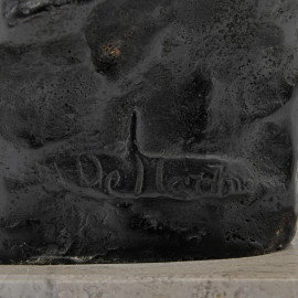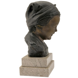Scultura in bronzo raffigurante il ritratto di una bambina, firmata De Martino, base in marmo, altezza cm 26