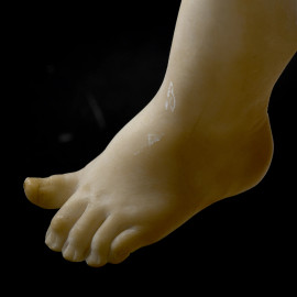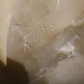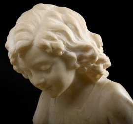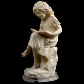Scultura in marmo raffigurante una bambina in lettura, base in onice, firmata, altezza cm 50
