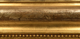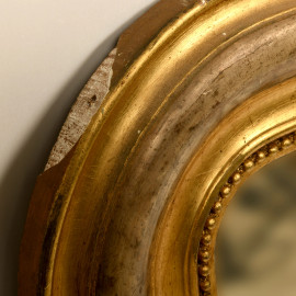 Specchio in stile Luigi Filippo con cornice dorata e argentata a mecca, con decori incisi a motivi vegetali, cm 105x77 (difetti)