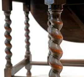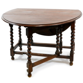 Tavolo a bandelle in rovere, con otto gambe tortili raccordate poggianti su quattro piedini, XIX secolo, cm 73x99x47 (aperto cm 73x99x119), (difetti)