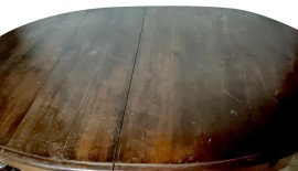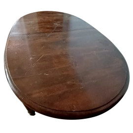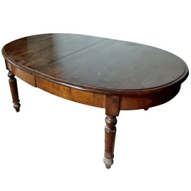 Tavolo ovale in noce allungabile (3 prolunghe da 30 cm) con quattro gambe tornite, XX secolo, cm 79x198x130, (difetti)