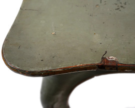 Tavolo veneziano in legno laccato, gambe mosse, XIX secolo, cm 76x90x68, (difetti, rotture)