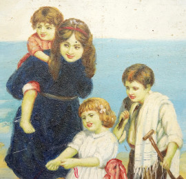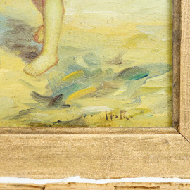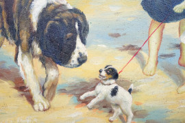 Una coppia improbabile, da Arthur John Elsley (1860–1952), olio su tavoletta, cm 20x25,7, entro cornice