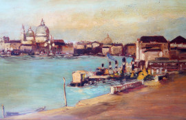 Veduta di Venezia, XX secolo, olio su tavola, cm 21,5x49, entro cornice