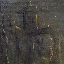 Veduta lacustre al chiaro di luna, XIX secolo, olio su tela, cm 25x45