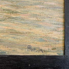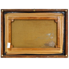 Veduta marina con imbarcazioni, XIX secolo, olio su tela, cm 41x61, entro cornice