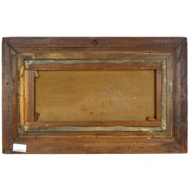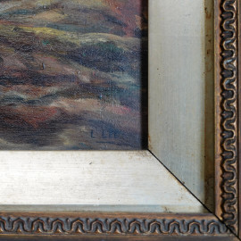 Veduta marina, XX secolo, olio su tela, firmato in basso a destra, cm 30,5x61, entro cornice