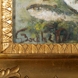 Venditrice di pesce, olio su tela, XX secolo, cm 40x50, entro cornice
