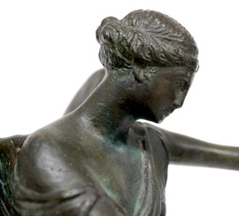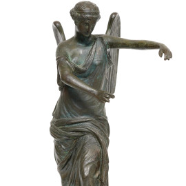 Vittoria alata, XX secolo, bronzo su base in marmo verde, altezza cm 49, (difetti)