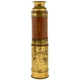 Cannocchiale in ottone e mogano con tubo ottico estensibile. Inizi del XX secolo, cm 26x18, (difetti)