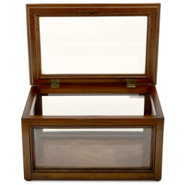 Cofanetto con struttura in legno e vetro. XX secolo, cm 16x30x20, (difetti)