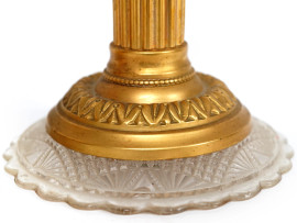 Coppia di portacandele in bronzo dorato e vetro molato, finemente lavorati in stile neoclassico con colonna scanalata e dettagli decorativi, fine del XIX - inizi del XX secolo, altezza cm 13, (difetti)