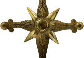 Croce in bronzo dorato con manico in legno, XX secolo cm 36x18, (difetti)