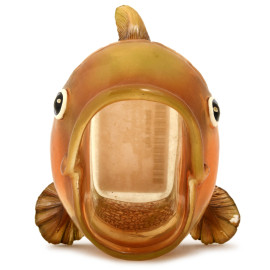 Fermacarte in vetro arancione a guisa di pesce, XX secolo, cm 8x11x9, (difetti)