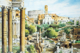 Foro Romano, stampa, cm 18,5x24 entro cornice, XX secolo (difetti)