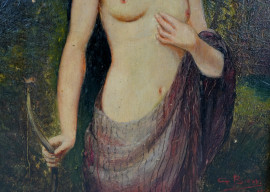 G. Bassi, Diana, 1903, olio su tavola, cm 27x21 entro cornice. Firmato e datato in basso a destra