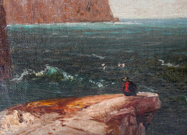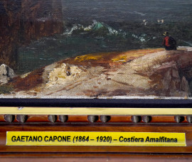Attribuito a Gaetano Capone (1845 - 1924) Costiera Amalfitana, olio su tela, cm 19x22 entro cornice