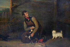 Henry Barnard Chalon (1770-1849) Uomo con cani, olio su tela, cm 62,75 entro cornice, firmato e datato in basso