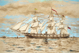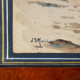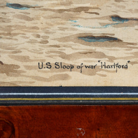 J.S. Mockay, U.S. Sloop of war "Hartford", 1900, acquerello su carta, cm 11,8x14,8 entro passepartout e cornice