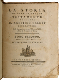 La Storia dell'Antico, e Nuovo Testamento del padre d. Agostino Calmet benedittino, divisa in due volumi, 1792.