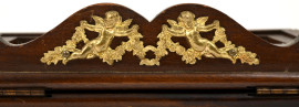 Leggio in legno con profili in bronzo, XX secolo, cm 31x22x24, (difetti)