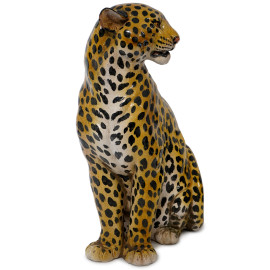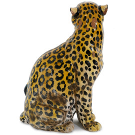 Leopardo in ceramica dipinta. XX secolo, cm 55x40, (difetti)