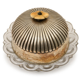 Lotto composto da burriera in cristallo con coperchio in metallo argentato, cm 13x18, XX secolo
