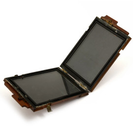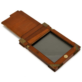 Lotto composto da chassis per banco ottico in legno e da piccolo teodolite in ottone con bussola, XX secolo, misura massima cm 22,5x15, (difetti)