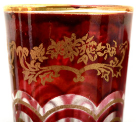 Lotto composto da: servizio Royal Family con 6 bicchierini in vetro rosso e cinque bicchierini da the marocchino, (difetti e mancanze)