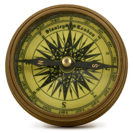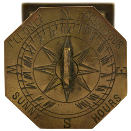 1) Lume ad olio in ottone; 2) Bussola tascabile Stanley London, 1880; 3) Meridiana portatile ottagonale; 4) Strumento a lenti tipo monocolo