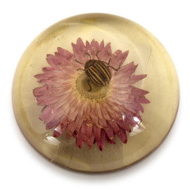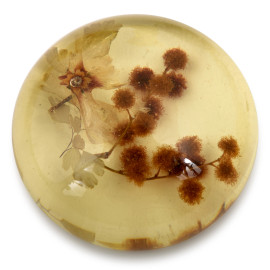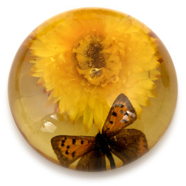 Lotto di 13 press papier in plexiglass con fiori ed insetti. Completa il lotto un piccolo plinto classico in plexiglass giallo. Dimensione massima cm 12,5x8x8,5, (difetti)