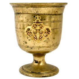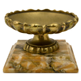 Lotto di 14 oggetti di varie forme in metallo dorato, misura massima cm 24x29x6