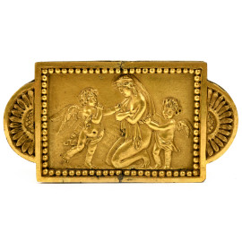 Lotto di 4 applicazioni decorative a rilievo in bronzo dorato, XX secolo, cm 11x6
