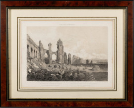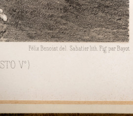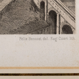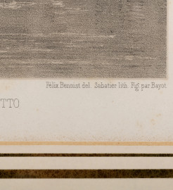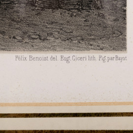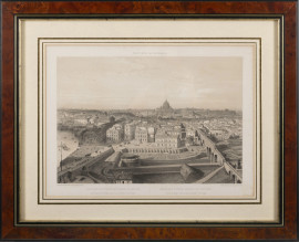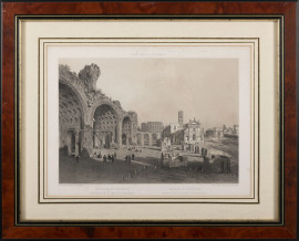 Lotto di 4 stampe tratte dall'opera di Felix Benoist "Rome dans sa grandeur. Veus, monument ancient et modernes", XX secolo, cm 30x41 entro passepartout e cornici, (difetti)