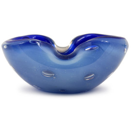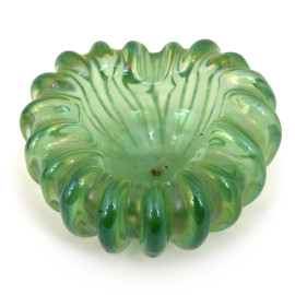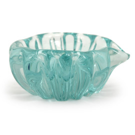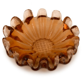 Lotto di 6 piccoli centrotavola in vetro di Murano con bordo ondulato in diversi colori. Manifattura Muranese del XX secolo, misura massima cm 14x14x4, (difetti)