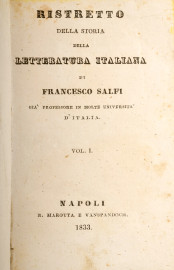 1) La Gerusalemme Liberata. Poema di Torquato Tasso - nuova edizione. Tomo primo. Napoli, 1837; 2) Ristretto della storia della letteratura italiana di Francesco Salfi, vol. I, Napoli 1833; 3) L'Elgiade - racconto lucano scritto da T.F., Napoli Tipografia Vanspandoch e C. 1841; 4) La Vita Nuova di Dante Alighieri, Torino - Società Editrice Italiana di M. Guigoni, 1858; 5) Lettere scelte de' migliori italiani scrittori (mancante di frontespizio); 6) Trenta Novelle di Messer Giovanni Boccaccio scelte dal suo Decamerone, Venezia appresso Giuseppe Gnoato 1817; 7)Decamerone di Giovanni Boccaccio illustrato e comentato da Giuseppe Bozzo, volume primo. Palermo, 1876; 8) Gli ultimi giorni dei Cavalieri di Malta. Racconto di Ifigenia Zauli Sajani, tomo I. Malta, 1841; 9) Saggi critici di Francesco de Sanctis. Seconda edizione. Napoli, 1869
