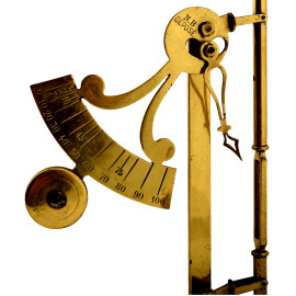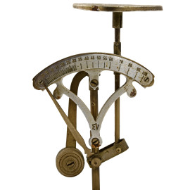 Lotto di cinque bilance postali antiche di materiali e misure diverse, XX secolo, dimensione massima cm 25x21, (difetti e mancanze)