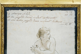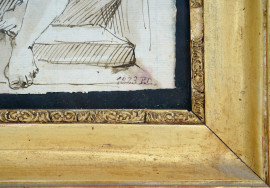 Lotto di due disegni raffiguranti nudi femminili, china e acquarello su carta, 1823. Firmati entrambi P.D. in basso. (difetti). Cm 23,5x18,5.
