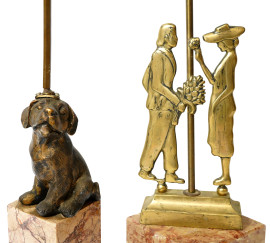Le sculture che caratterizzano lo stelo sono rispettivamente quella di un cane in metallo dorato e di una coppia di innamorati in ottone dorato.