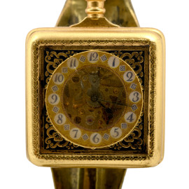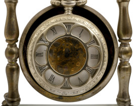 Il primo, a cassa in metallo argentato, presenta meccanismo a vista al quadrante e numeri romani. Il supporto è composto da una basetta in plexiglass e elementi laterali torniti in metallo argentato; il secondo, con meccanismo a vista e quadrante rettangolare riccamente impreziosito, ha supporto a guisa di cobra in bronzo dorato.