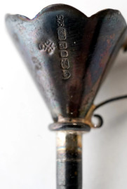 1) il primo, in argento, presenta struttura in metallo dorato e imbuto in argento, peso gr 33; 2) il secondo, in metallo argentato, è finemente decorato con movimento costolonato.