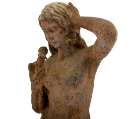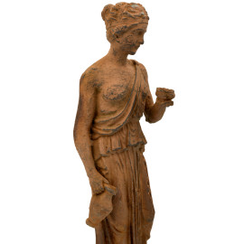 Lotto di due sculture in ghisa raffiguranti figure femminile panneggiate. Basi in marmo. XX secolo, altezza cm 48, (difetti)
