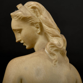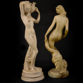 Lotto di due sculture in resina raffiguranti Leda con il cigno e Afrodite, XX secolo, altezza massima cm 36, (difetti)