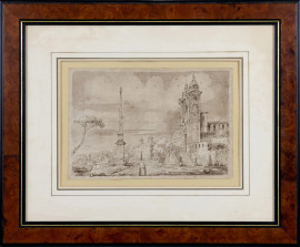 Lotto di due vedute di Roma, china e acquarello su carta vergata, XX secolo, cm 16,5x25 entro cornice