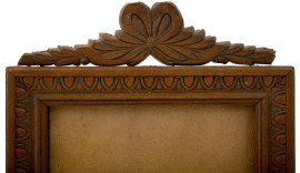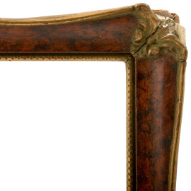 Lotto di sei cornici in vari materiali e fogge, XX secolo, dimensione massima cm 27x21, (difetti e mancanze)