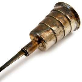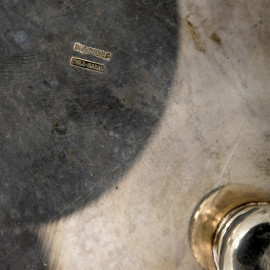 Composto da zuccheriera in argento Christofle con contenitore interno in vetro; un lungo cucchiaino con base a misurino in once in argento; una formaggiera in Electro-Palted Nichel Silver e conenitore in cristallo; un vassoio in metallo argentato; una zuccheriera senza coperchio silver plated con interno vermeil; timbro per ceralacca in argento.