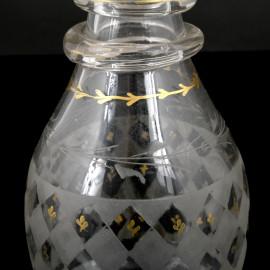 Lotto di tre bottiglie in cristallo e vetro di varie fogge, XX secolo, (difetti)