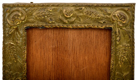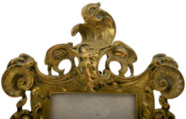 una in bronzo dorato lavorata a sbalzo con motivi floreali e angolari a conchiglia; la seconda con ricca decorazione a volute incise in ottone; la terza composta da due piatti incernierati e richiudibili con delicata decorazione a foglie di quercia in metallo dorato.