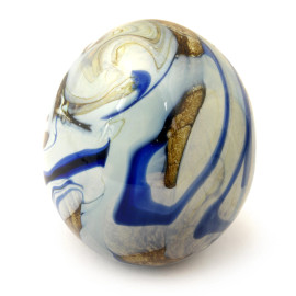 Lotto di tre fermacarte decorativi a guisa d'uovo in vetro di Murano, XX secolo, altezza massima cm 20